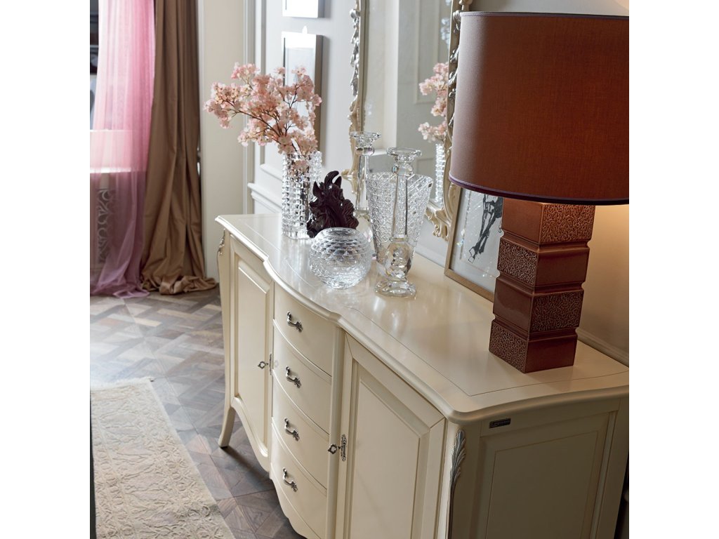 Súprava pre obývaciu izbu zahŕňa vitríny, komody, konzolové a konferenčné stolíky, TV skrinky či zrkadlá – všetko navrhnuté tak, aby spolu vytvárali harmonický celok s dôrazom na remeselnú hodnotu a dekoratívne detaily.