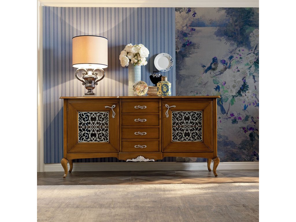 Dominantným prvkom je použitie masívneho dreva, ktoré je starostlivo opracované tradičnými remeselnými technikami. Zlaté alebo strieborné lístky, jemné rezby podčiarkujú exkluzívny charakter každého kúsku. Nechýbajú ani zaujímavé farebné kombinácie a patinované efekty, ktoré vytvárajú dojem nadčasovej noblesy.