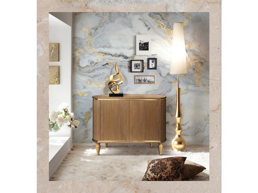 - Nohy drevené alebo kovové v zlatom alebo striebornom prevedení, poprípade sokel alebo, u nočných stolíkov, kúpeľňového nábytku či jednodverovej vitríny, na zavesenie.