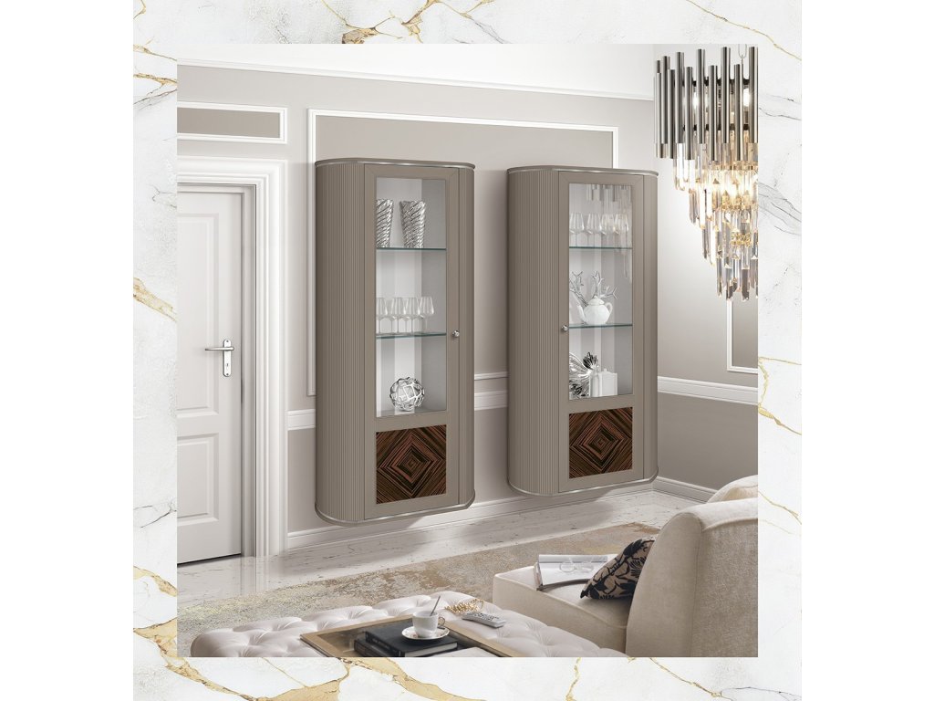 - Vitríny sú celé presklené alebo len čiastočne, doplnené SOFT CLOSE (mäkké zatváranie).