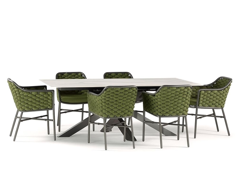 MILO SET obsahuje exteriérový stôl MILO a 6 x kreslo PANAMA