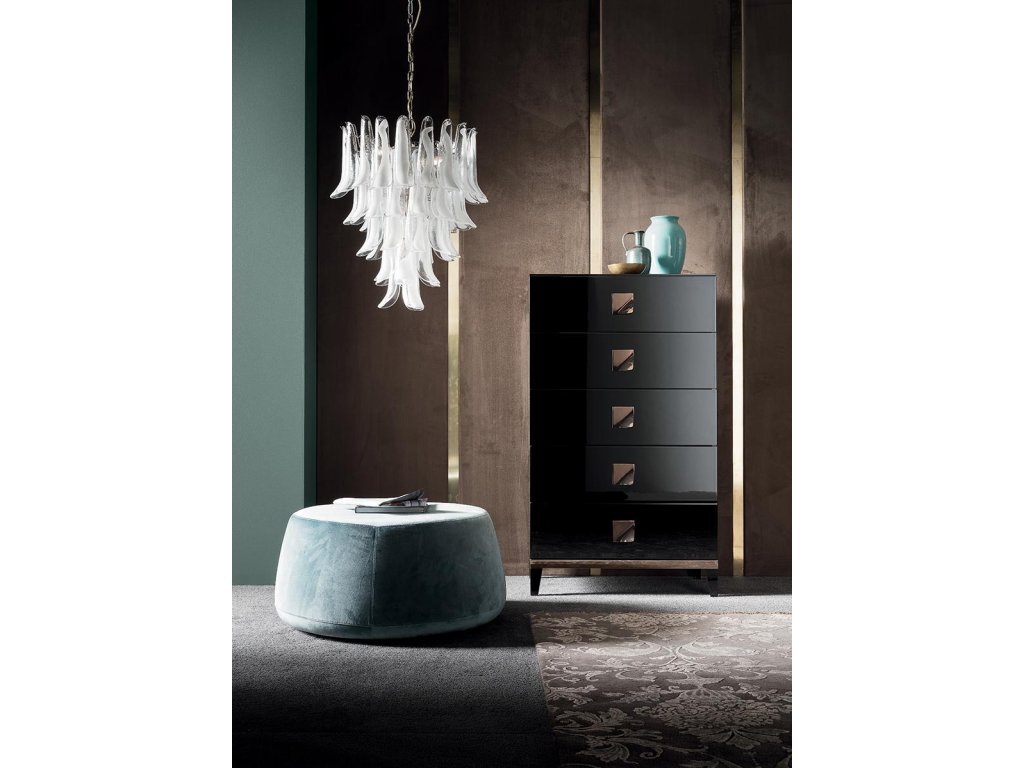 Kolekcie MONT NOIR predstavuje príjemný kontrast medzi čiernou dyhou a kovovými prvkami v medenej farbe.