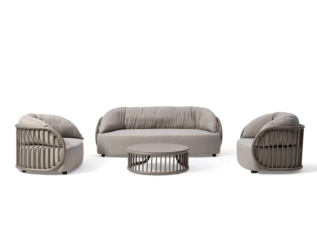 K posteli NEST je možné objednať ďalšie exteriérové prvky. Rovnomenná kolekcia NEST prináša aj exteriérové sedenie o divánu, dvoch kreslách a kávovom stolíku.