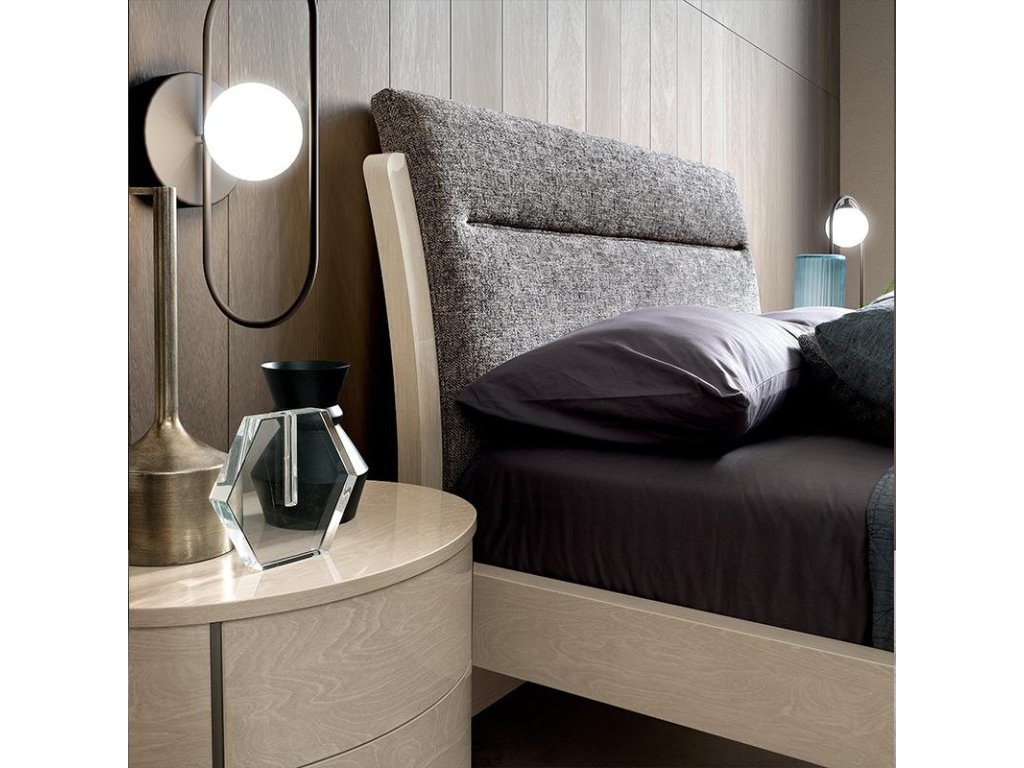 - ROUND je dizajnová rada nábytku do spálne s oblými detailmi, ktoré dopĺňajú exkluzívny vysoký lesk povrchového prevedenia jednotlivých kusov.