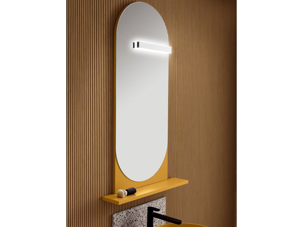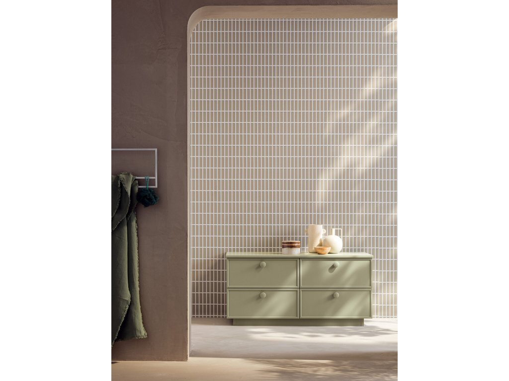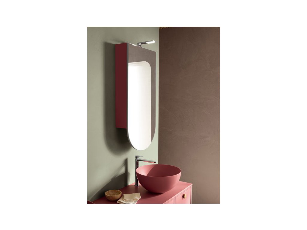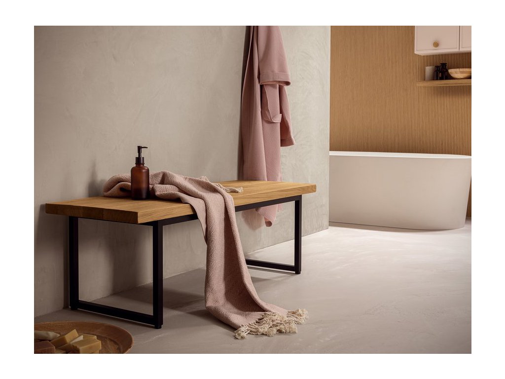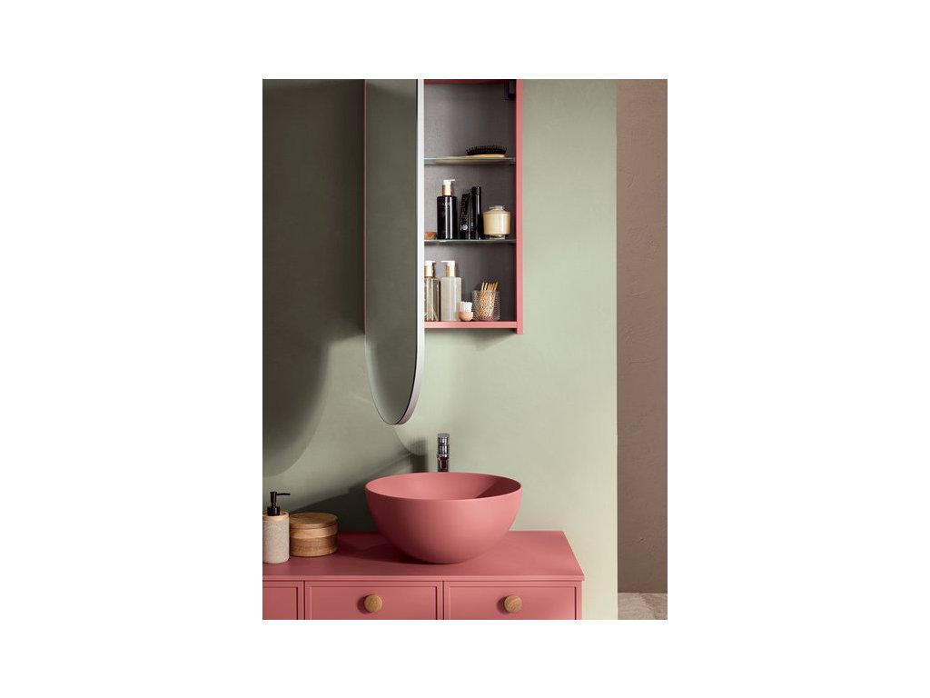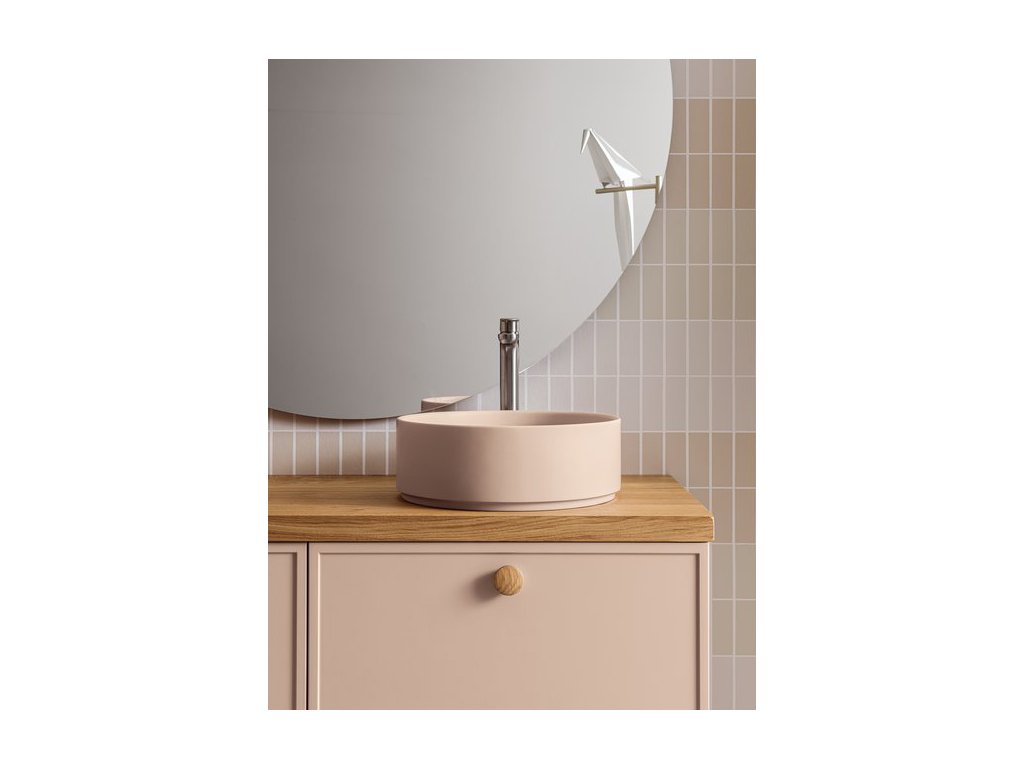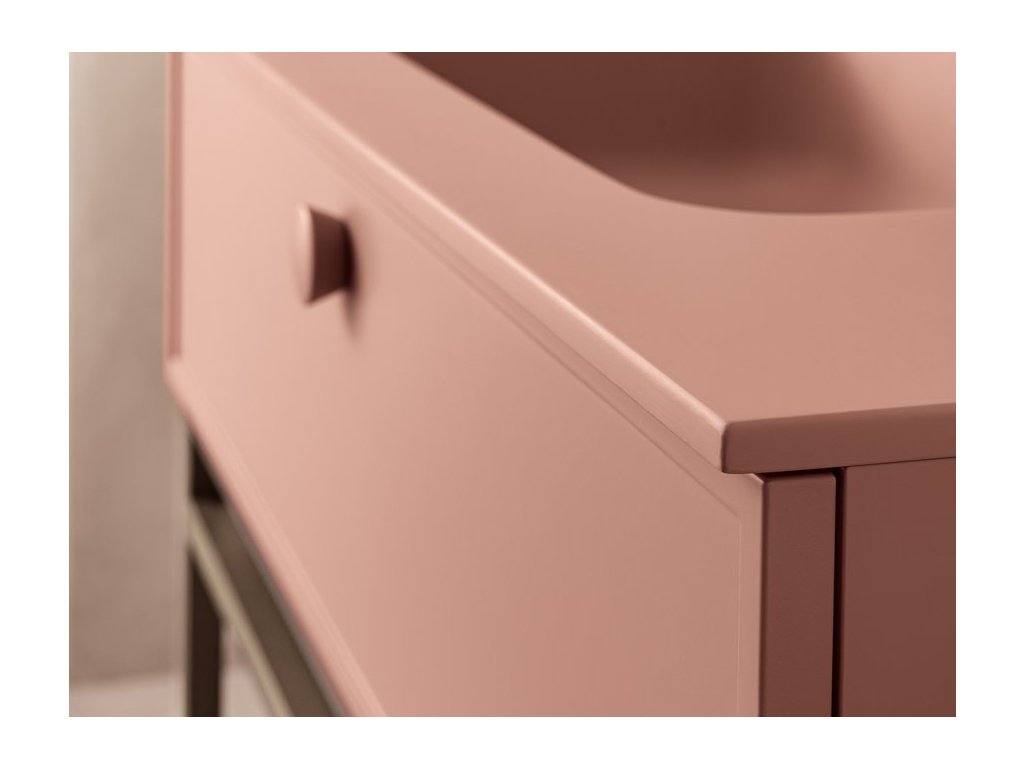 Rukoväť z prírodného dubového dreva dodáva kúpeľňovému nábytku prvok tepla a prirodzenosti a zároveň má aj nádych elegancie, ktorý vytvára príjemný kontrast k matnému laku.