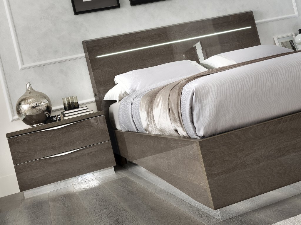Spálňa z kolekcie PLATINUM ponúka viacero modelov moderných postelí s LED osvetlením, čalúnením a jemným štrasovým zdobením.