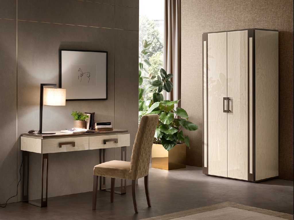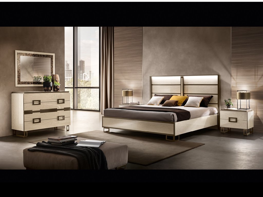 Kolekcia nábytku POESIA obsahuje krásne solitérne kúsky. Minimalistické detaily sú skombinované so sofistikovanosťou elegantných materiálov. Geometrický lineárny dizajn nábytku POESIA je doplnený rafinovanými materiálmi a detailmi. Vrchné dosky na jednotlivých kusoch nábytku POESIA sú vyrobené so sieťotlačou s efektom mramoru Emperador Dark. Kolekcia je vyrobená v bledej slonovinovej farbe v lesklom mramorovanom prevedení. Všetky kovové detaily sú teplej hnedej bronzovej farbe. Celkový dizajn kolekcie je smerovaný do hranatých lineárnych tvarov, spája sa tu jemnosť, objem, estetika a pohodlie. Nábytok z kolekcie POESIA je „100% MADE IN ITALY“.