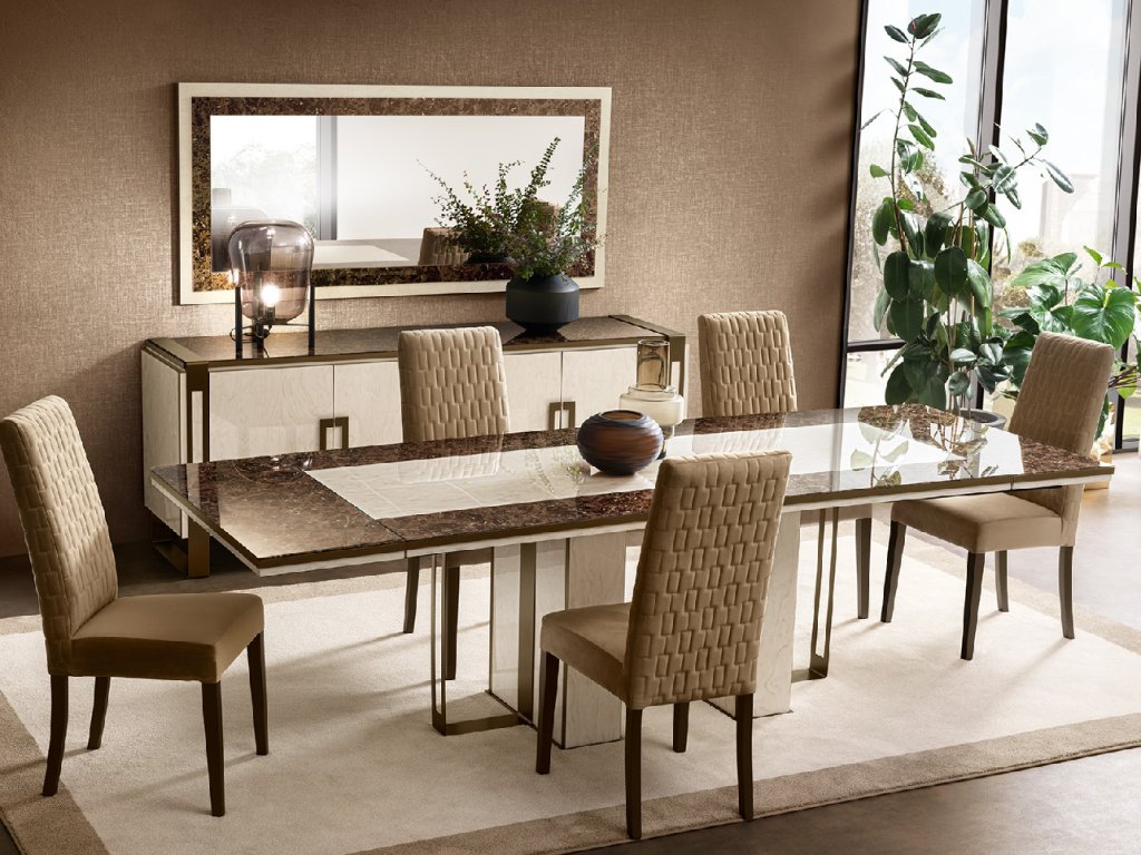 Kolekcia nábytku POESIA obsahuje krásne solitérne kúsky. Minimalistické detaily sú skombinované so sofistikovanosťou elegantných materiálov. Geometrický lineárny dizajn nábytku POESIA je doplnený rafinovanými materiálmi a detailmi. Vrchné dosky na jednotlivých kusoch nábytku POESIA sú vyrobené so sieťotlačou s efektom mramoru Emperador Dark. Kolekcia je vyrobená v bledej slonovinovej farbe v lesklom mramorovanom prevedení. Všetky kovové detaily sú teplej hnedej bronzovej farbe. Celkový dizajn kolekcie je smerovaný do hranatých lineárnych tvarov, spája sa tu jemnosť, objem, estetika a pohodlie. Nábytok z kolekcie POESIA je „100% MADE IN ITALY“.
