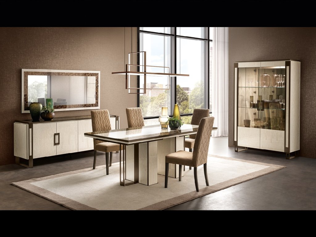 Kolekcia nábytku POESIA obsahuje krásne solitérne kúsky. Minimalistické detaily sú skombinované so sofistikovanosťou elegantných materiálov. Geometrický lineárny dizajn nábytku POESIA je doplnený rafinovanými materiálmi a detailmi. Vrchné dosky na jednotlivých kusoch nábytku POESIA sú vyrobené so sieťotlačou s efektom mramoru Emperador Dark. Kolekcia je vyrobená v bledej slonovinovej farbe v lesklom mramorovanom prevedení. Všetky kovové detaily sú teplej hnedej bronzovej farbe. Celkový dizajn kolekcie je smerovaný do hranatých lineárnych tvarov, spája sa tu jemnosť, objem, estetika a pohodlie. Nábytok z kolekcie POESIA je „100% MADE IN ITALY“.