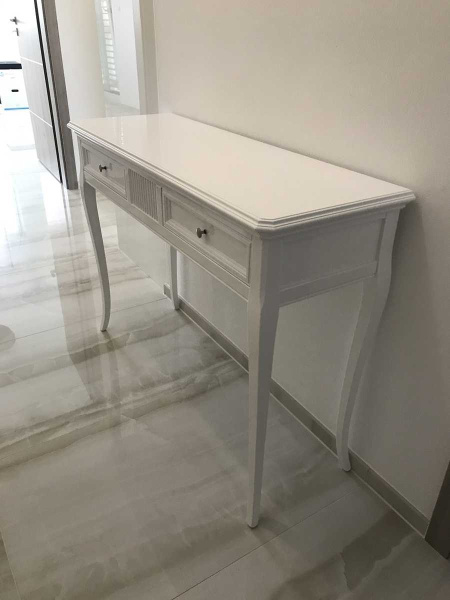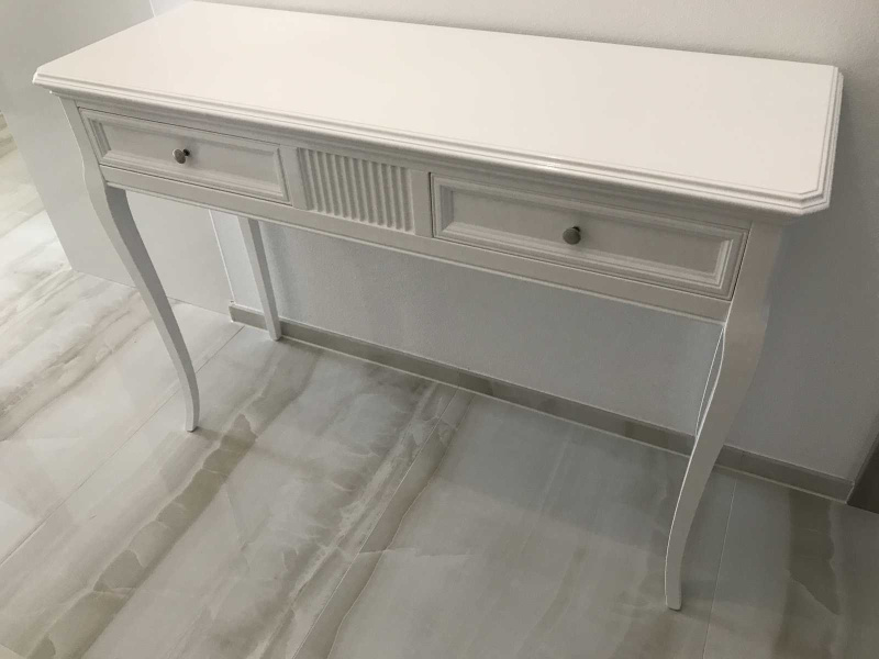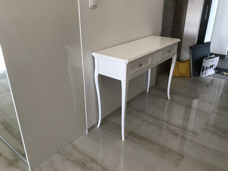 Vo vstupe sme umiestnili krásnu štýlovú konzolu art. 9718 vo vysokom bielom lesku. Celá vstupná chodba bola doplnená o krásne obrazy a luxusné zrkadlo od talianskeho výrobcu Bubola & Naibo.