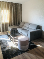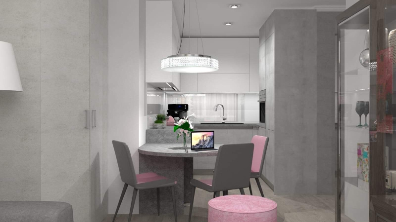 Interiér dvoj-izbového bytu v Bratislave sme pre klientku navrhli, urobili sme vizualizáciu a následne sme byt zariadili. Interiér bytu pre mladú energickú slečnu sme zariadili v modernom dizajne a jemných farbách šedej v kombinácií s požadovanou rúžovou farbou. Pre zariadenie kuchyne sme zvolili modernú kolekciu COLORS v bielej lesklej farbe v kombinácií so šedou betónovou povrchovou úpravou. Jedálenské stoličky od firmy NATISA z kolekcie MELODY v dvojfarebnej kombinácií – šedá s rúžovou pekne doladili jemný vzhľad interiéru. Spojený priestor kuchyne a obývačky musel farebne ladiť a tak sme zvolili nábytok z kolekcie ELITE v šedej lesklej farbe a doplnili sme ju pohodlnou sedacou súpravou talianskej výroby v šedej látke s odleskom. Koberec z kolekcie GABRIELLE nám celý priestor zjednotil a doplnil celkový vzhľad interiéru.