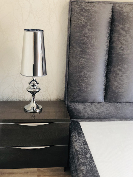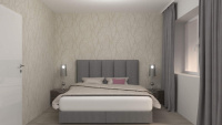 Spálňa v tomto elegantnom byte bola menších rozmerov. Aj napriek tomu sa nám podarilo umiestniť tu všetko čo klientka požadovala. Kontinentálnu posteľ z kolekcie BALDUR v rozmer 180×200 cm v spojení s kolekciou PLATINUM, z ktorej sme použili nočné stolíky a šatníkovú skriňu.