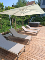 - Na ochranu pred slnkom sme zvolili slnečník VENEZIA, ktorý vďaka svojmu bočnému ramenu neprekáža v priestore, ale zároveň poskytuje dostatok tieňa aj počas horúcich dní.