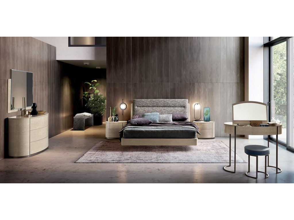 Centrálnym kúskom nočnej časti interiéru je posteľ a kolekcia ROUND ponúkajú hneď niekoľko modelov ktorým dominuje originálne riešené prevedenie čalúnenia. Žiadaný úložný priestor zabezpečujú šatníkové skrine, dostupná je 2- až 6-dverová verzia s klasickým otváraním aj model so zásuvnými dverami. Naviac, je možné šatníkové skrine vyskladať aj na väčší rozmer, prípadne rohovú verziu, alebo skriňu s oblými ukončeniami. Priestor môžete skrášliť elegantným toaletným stolíkom so zrkadlom, doplneným o kresielko. Nočný stolík, 3-zásuvková komoda alebo vysoká 5-zásuvková komoda sú samozrejmosťou, ktorú má táto nadčasová kolekcia v ponuke.