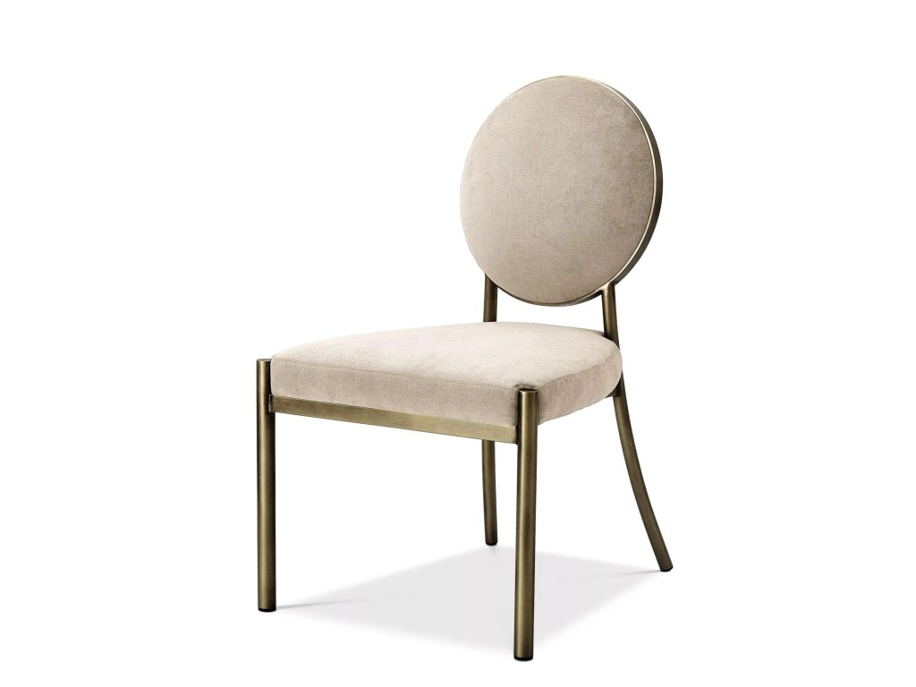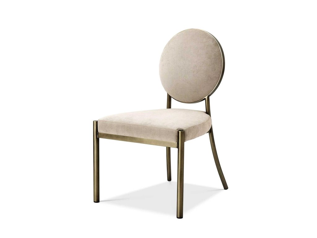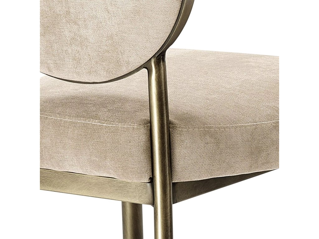 Štýlová stolička so zamatovým čalúnením a kovovou konštrukciou. Model inšpirovaný nábytkom v štýle Art Deco typickým pre 20. roky 20. storočia. Jej nadčasový dizajn je rovnako vhodný ako vtedy tak aj dnes.