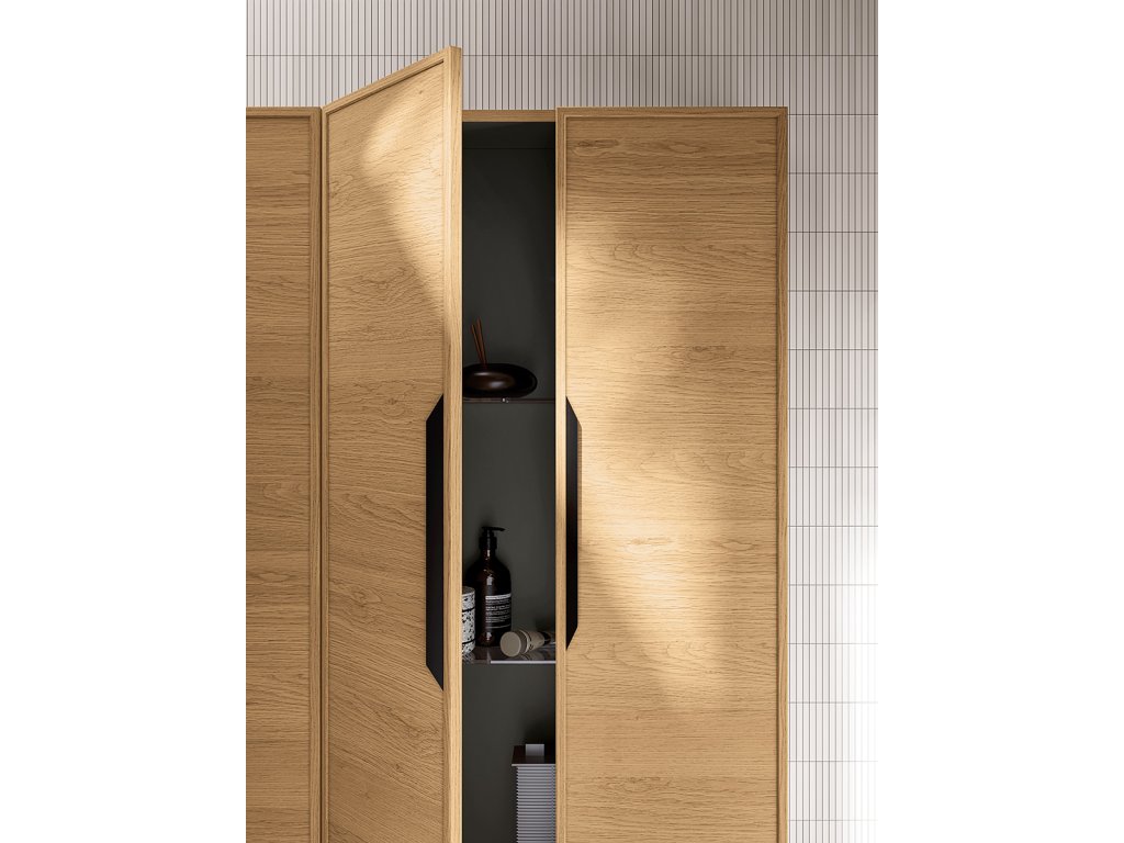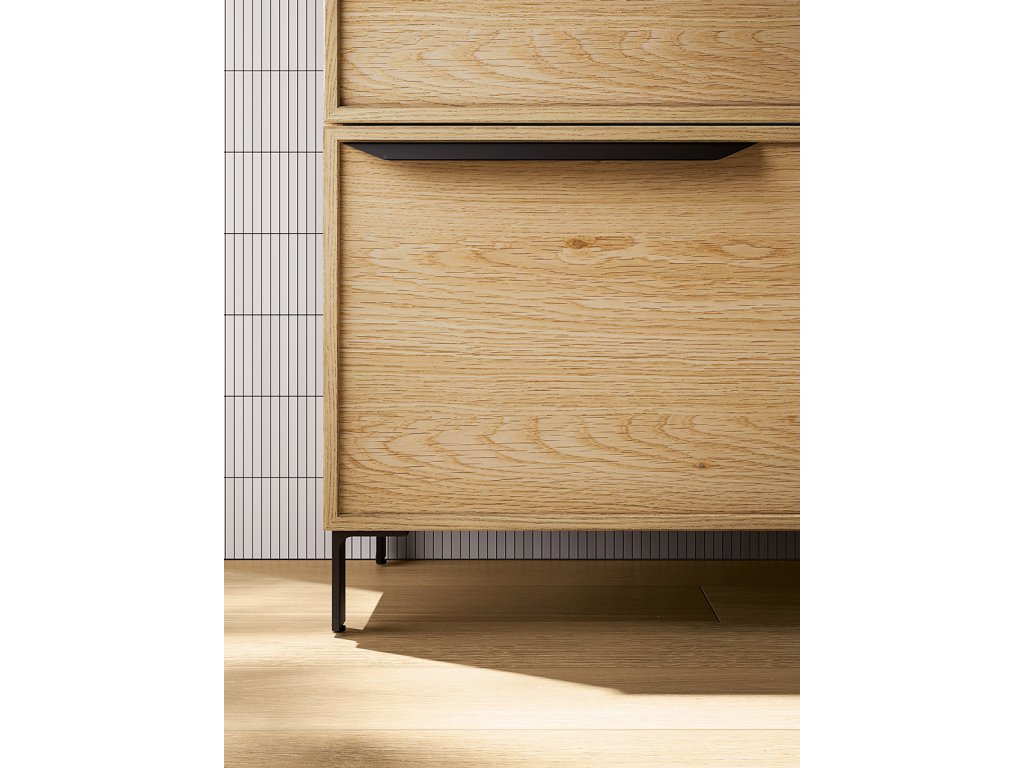 Kolekcia TABULA sa vyznačuje svojou čistou drevenou povrchovou úpravou dubu. Nábytok ma masívny dubový rám, je kombinovaný s vodorovnou kresbou tohto ušľachtilého dreva. Malé suky v kresbe podtrhujú autenticitu materiálu. Úchytky sú v čiernom kove v dvoch prevedeniach s osobitným dizajnom.