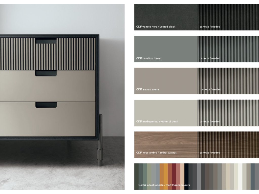 Moderný lineárny nábytok z kolekcie TIME sa zrodil v dizajnérskom štúdiu Rossi&Co. v Taliansku. Podstatou dizajnu kolekcie TIME je inovatívny materiál CDF z ktorého je nábytok vyrobený a taktiež ide o špecifické ryhovanie, ktoré znázorňuje počítanie času.