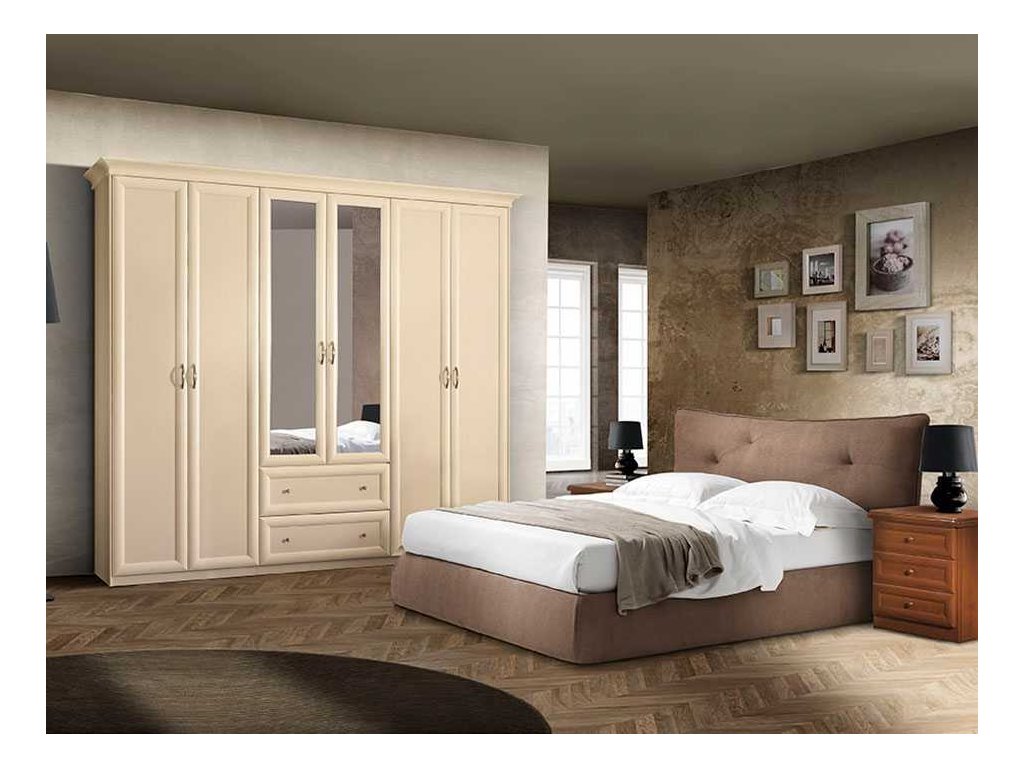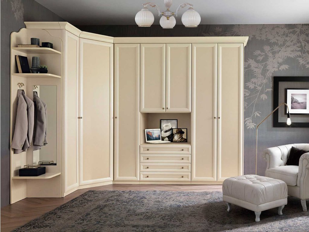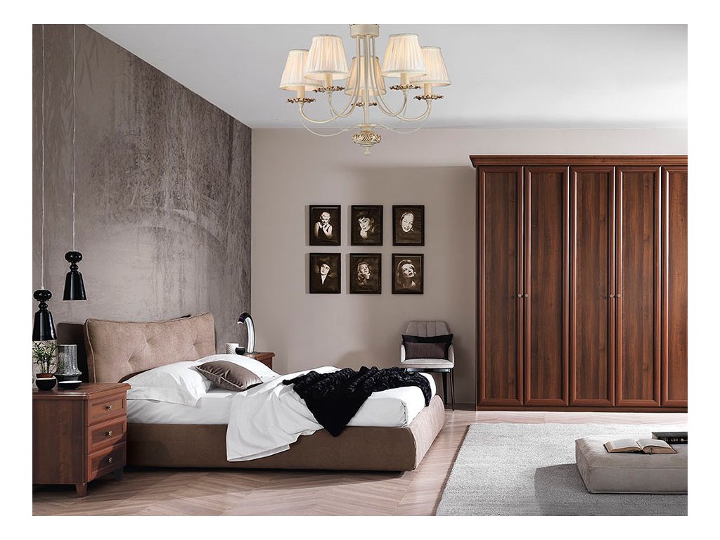 Klasický vkus, elegancia a jednoduchosť v kombinácii s veľkou modularitou spální je prispôsobená rôznym požiadavkám na zariadenie pre elegantný a súčasný štýl, ako je unikátna a nenapodobiteľná, vynikajúca klasika. Dvere a zásuvky s rámovým rámom a voliteľným zlatým profilom, hodvábnym tienením alebo priehľadným matným sklom s voliteľnými závesmi.