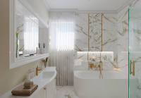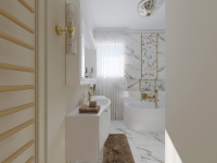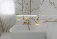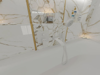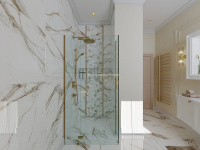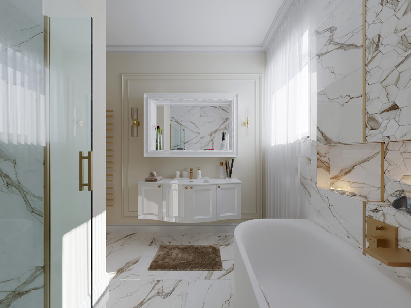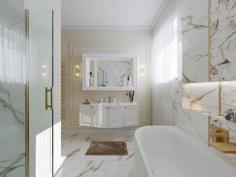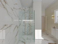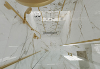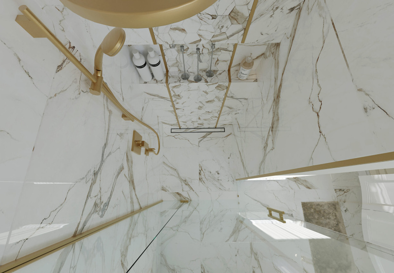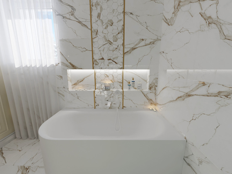 Rozhodli sme sa, že nebudeme obkladať všetky steny v tomto návrhu. Ako obklad a dlažbu sme zvolili CALACATTU od výrobcu ENERGIEKER.