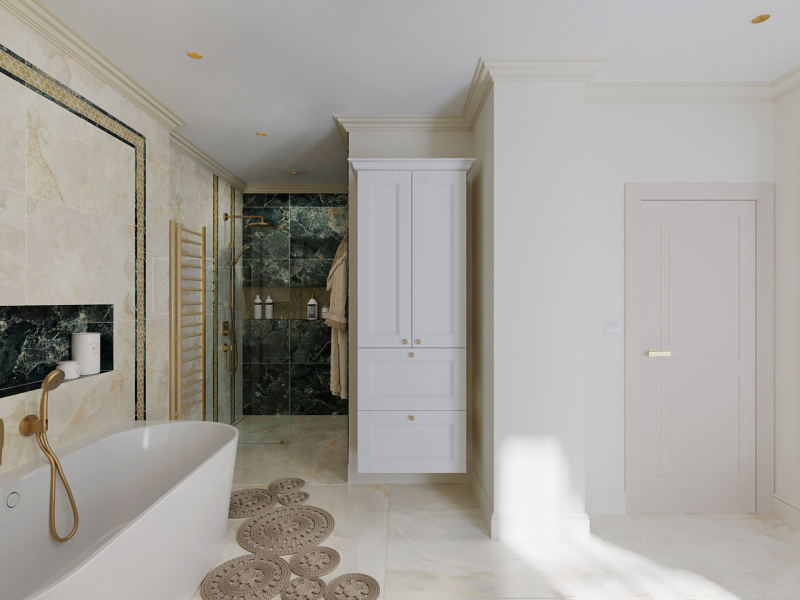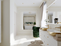 Biela v kombinácií so zlatou, lesklou béžovou a zelenou vytvoria oázu pokoja pre celú rodinu. Dostatok svetla, úložného miesta a jemné dekoratívne prvky tvoria celok.