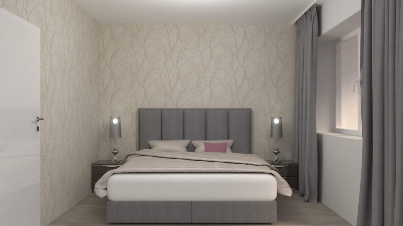 Spálňa v tomto elegantnom byte bola menších rozmerov. Aj napriek tomu sa nám podarilo umiestniť tu všetko čo klientka požadovala. Kontinentálnu posteľ z kolekcie BALDUR v rozmer 180×200 cm v spojení s kolekciou PLATINUM, z ktorej sme použili nočné stolíky a šatníkovú skriňu.