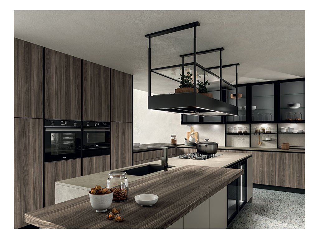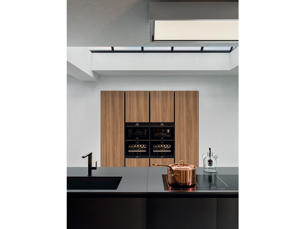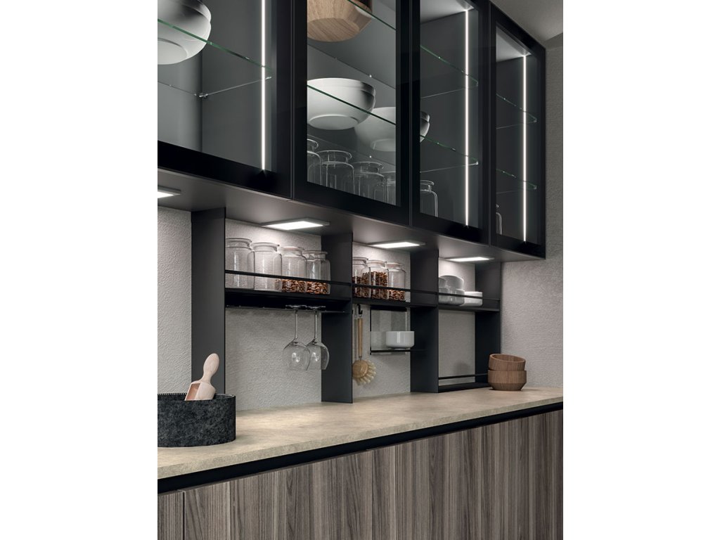 Modulárne jednotky sú tiež nové, ultramoderné a prispôsobiteľné, navrhnuté tak, aby zaisťovali maximálnu funkčnosť kombinovanú s najlepším dizajnom: napríklad všestranná knižnica Stili spája priestor kuchyne a obývačky, viacúčelové nástenné panely sa používajú na zavesenie a organizovanie doplnkov alebo elegantné modulové jednotky zdobia čierne rámy a panely z dymového skla.